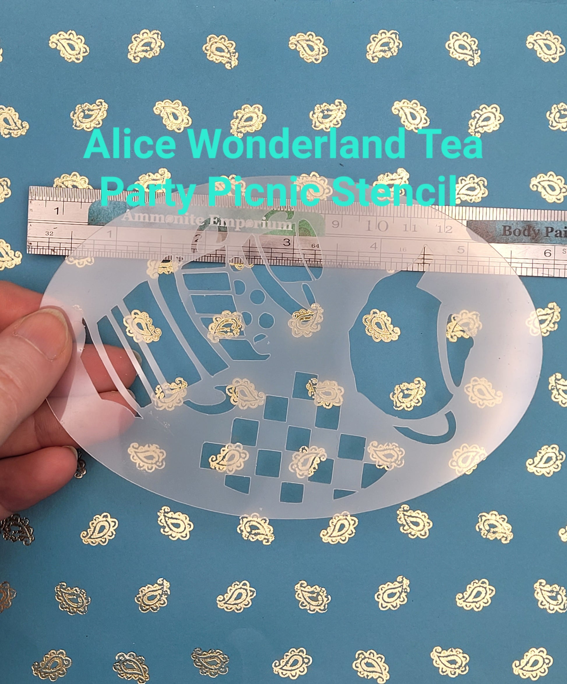 Alice in Wonderland teacup teapot checked tablecloth Stencil face paint bodyart cakecraft