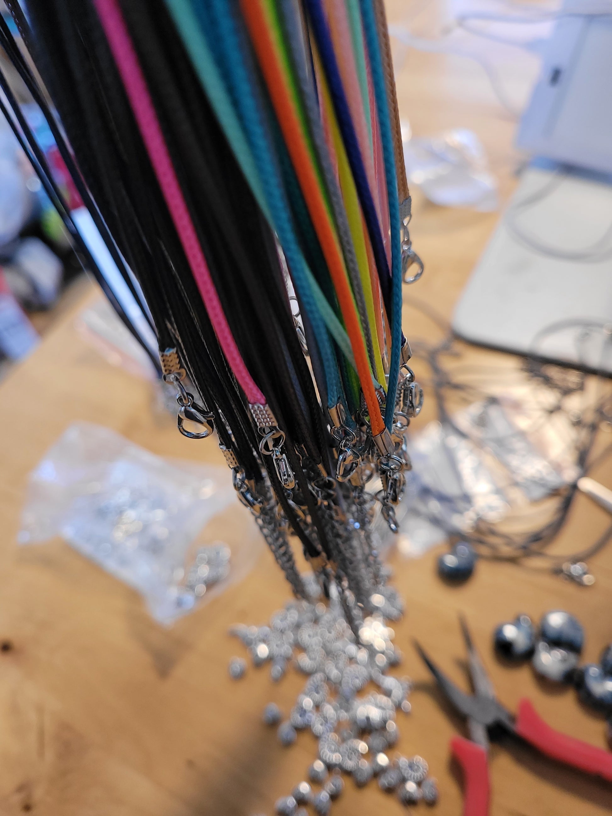 Huge range of thong colours, please ask, I will try to find a suitable colour in your bead number choice but they may vary as I have made all these already and won't be ordering more thongs for a while.