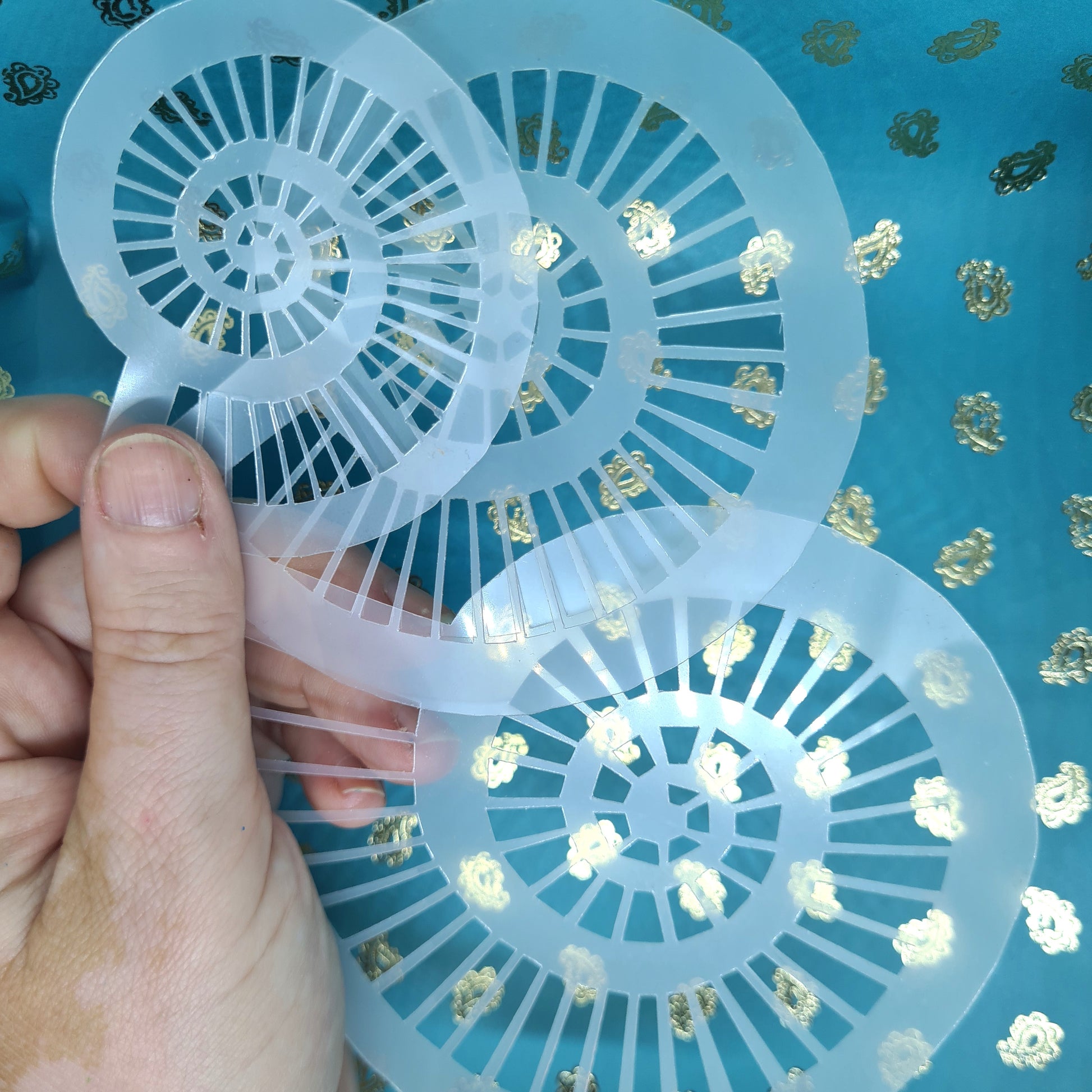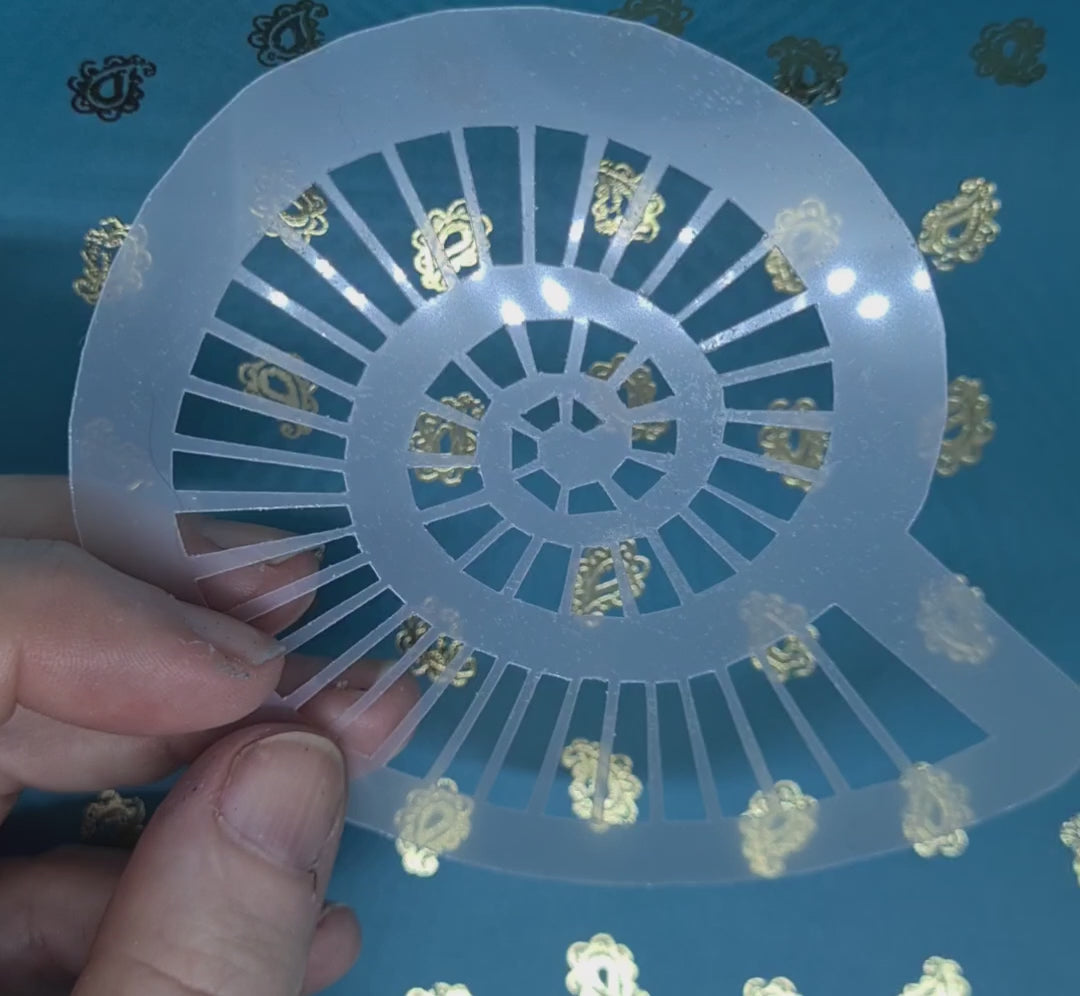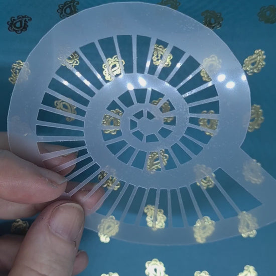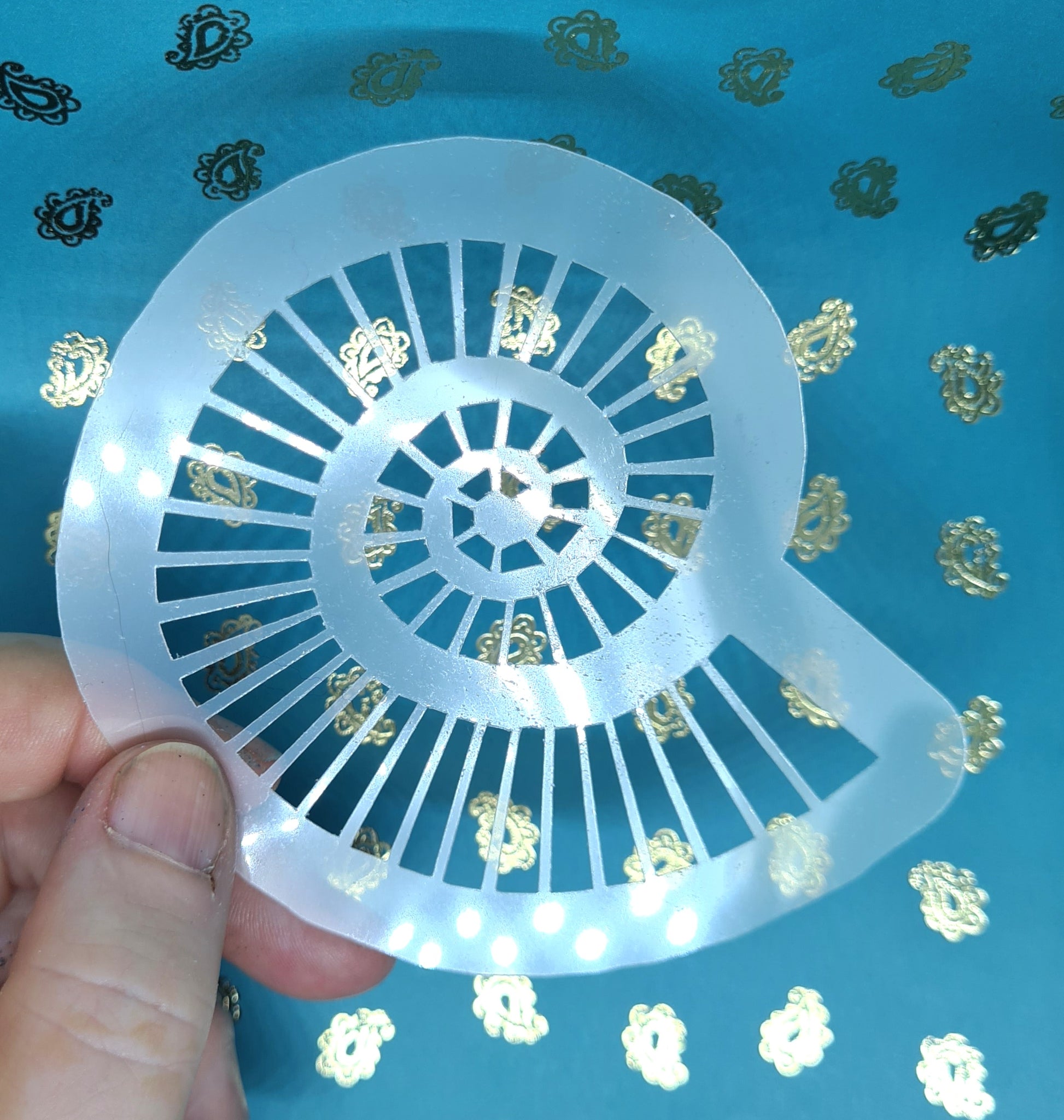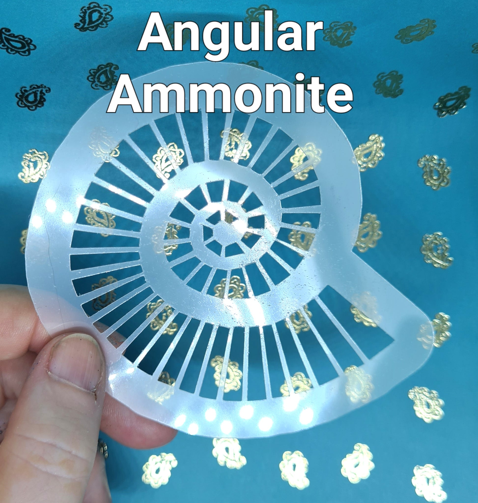 Modern angular ammonite/ nautilus/ spiral shell/ snail, in a reusable flexible stencil.