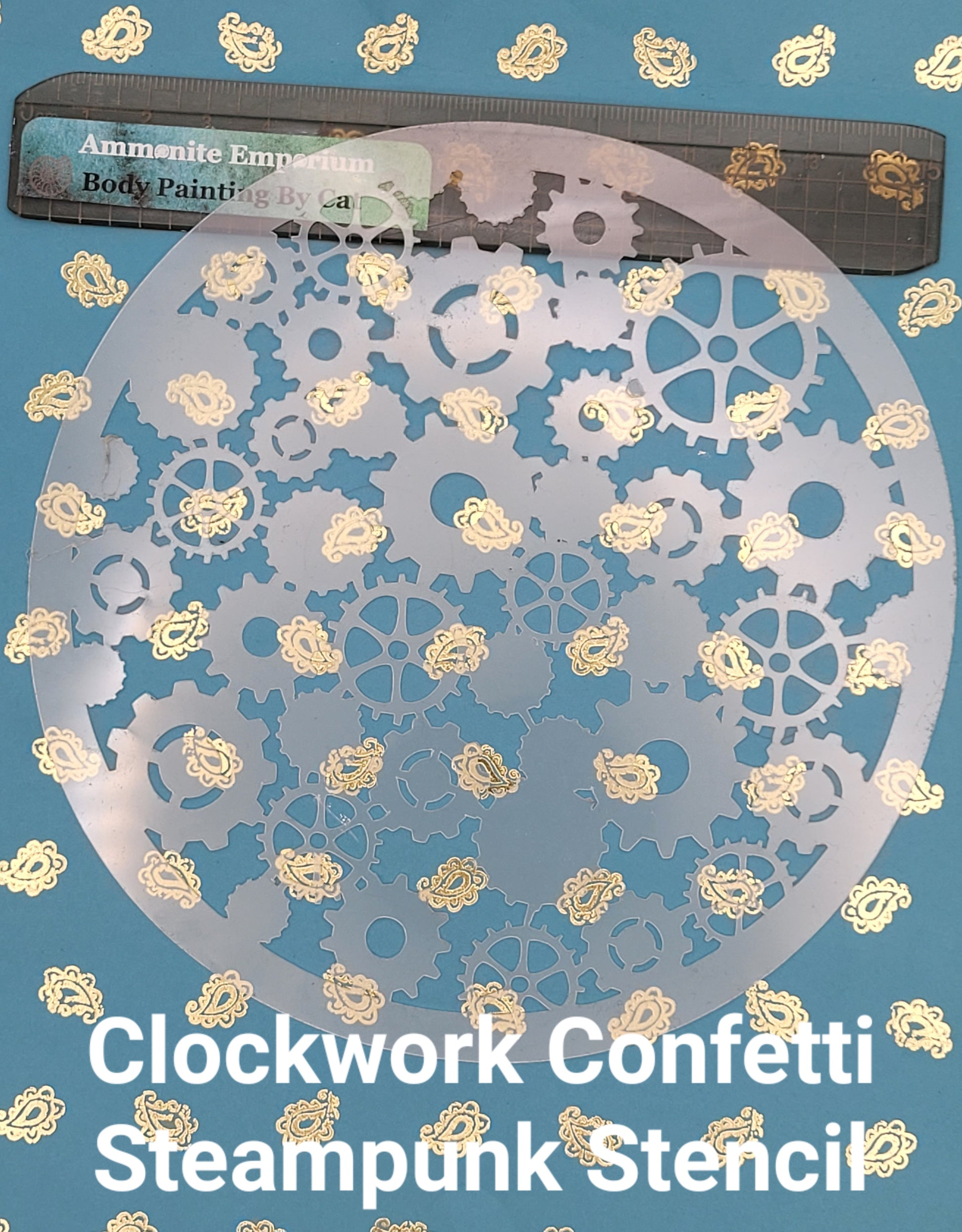 Clockwork Confetti Steampunk Stencil cog airbrush facepaint