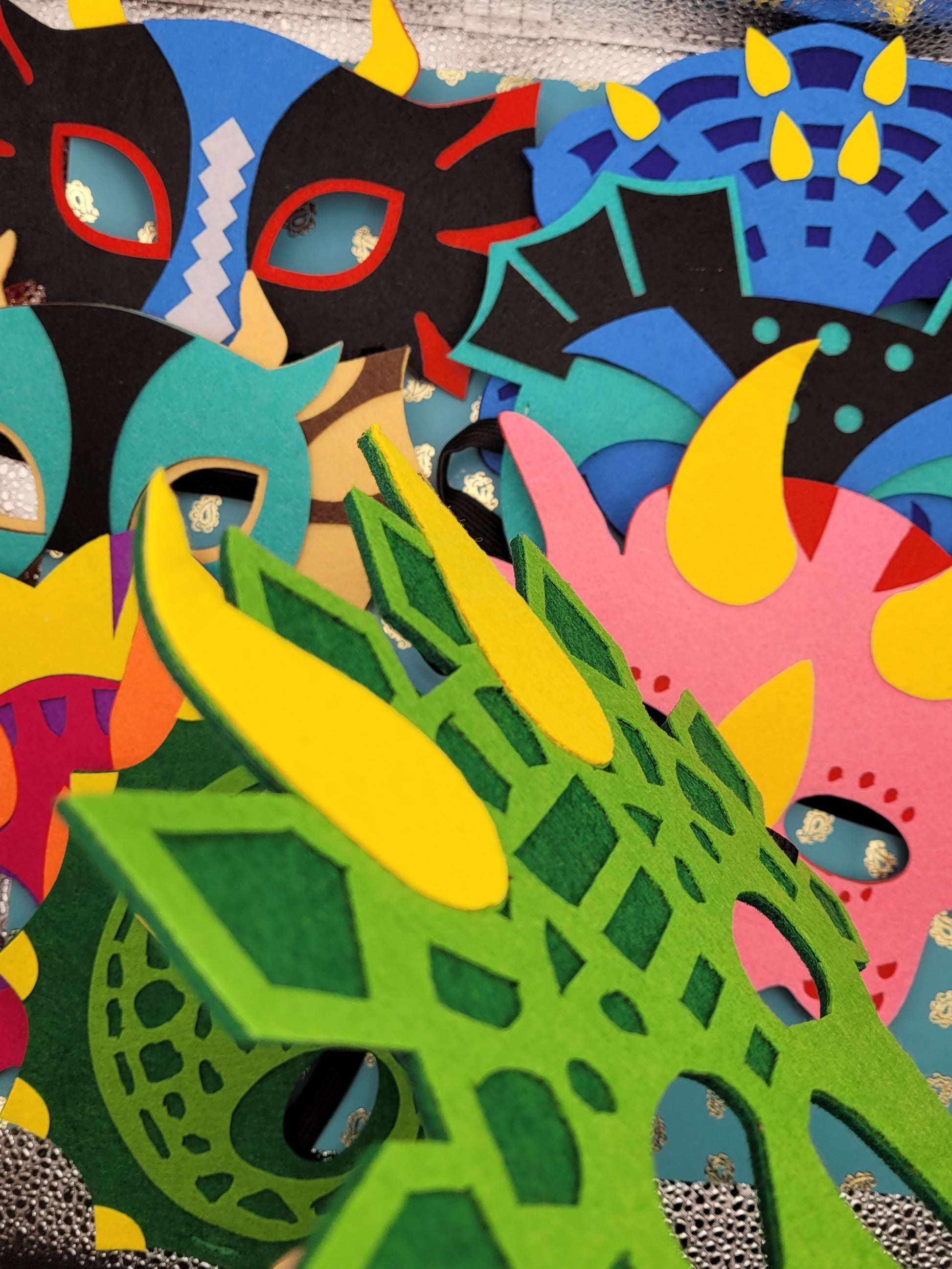 Stunning bright felt DECORATIVE MASKS.