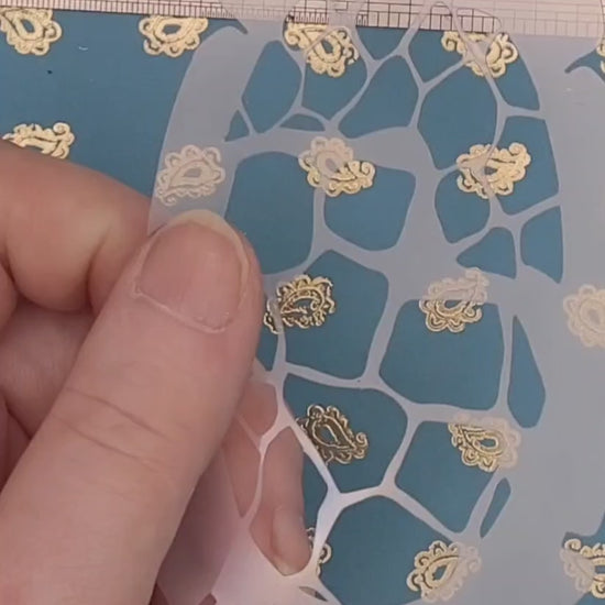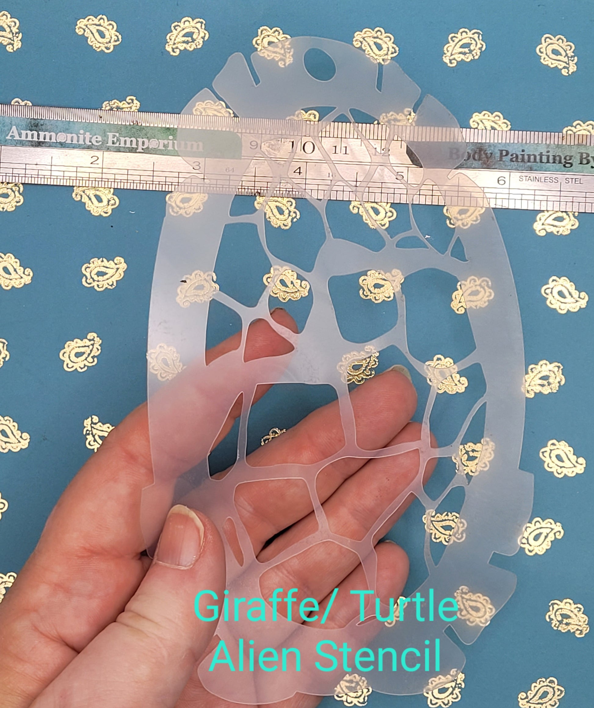 Animal skin or shell pattern stencil. I also use it for my alien designs and cracked mud. 2 different sizes on 1 handy stencil.