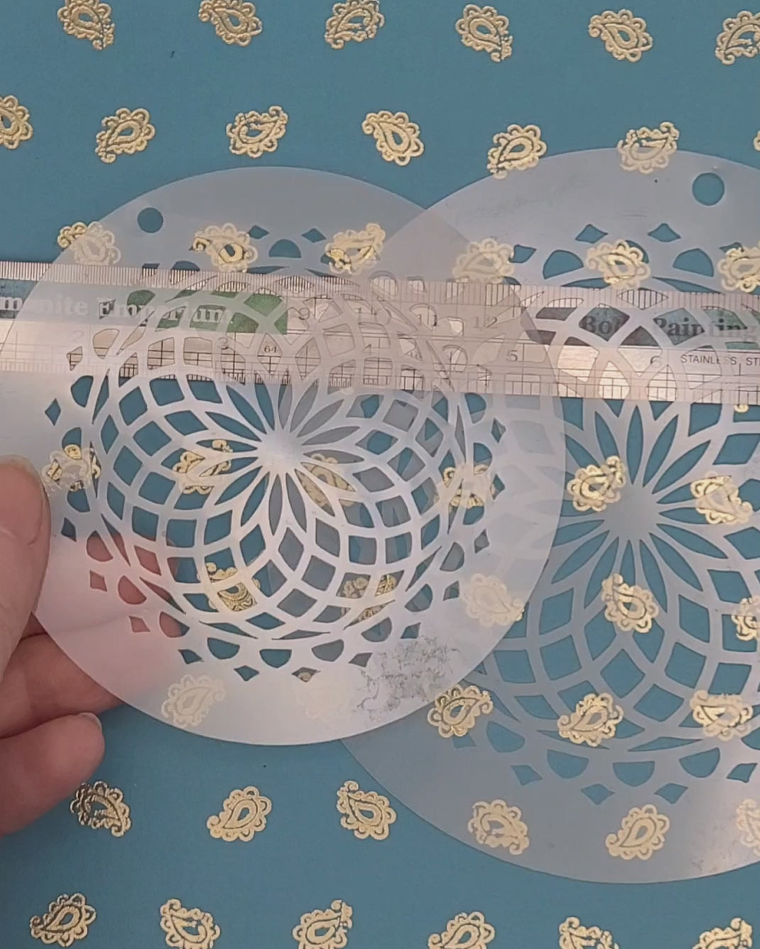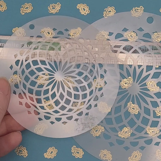Dreamcatcher Doily Mandala pattern, I love it for a base behind eye designs and UV club stuff, also great as decor on sugar skulls etc. Easier to handle and available in larger sizes than the full circle stencil.
