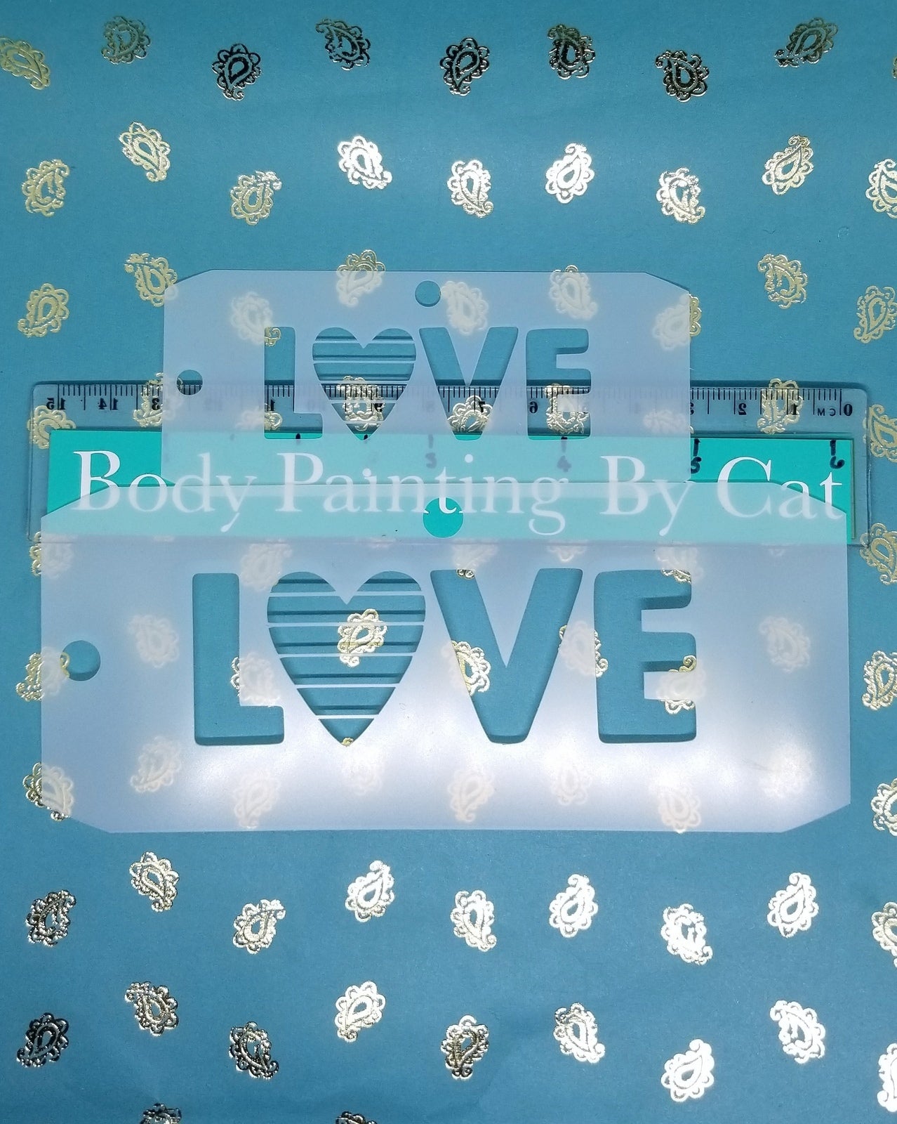 LOVE w heart PRIDE flag LGBTO Stencil print face paint body art
