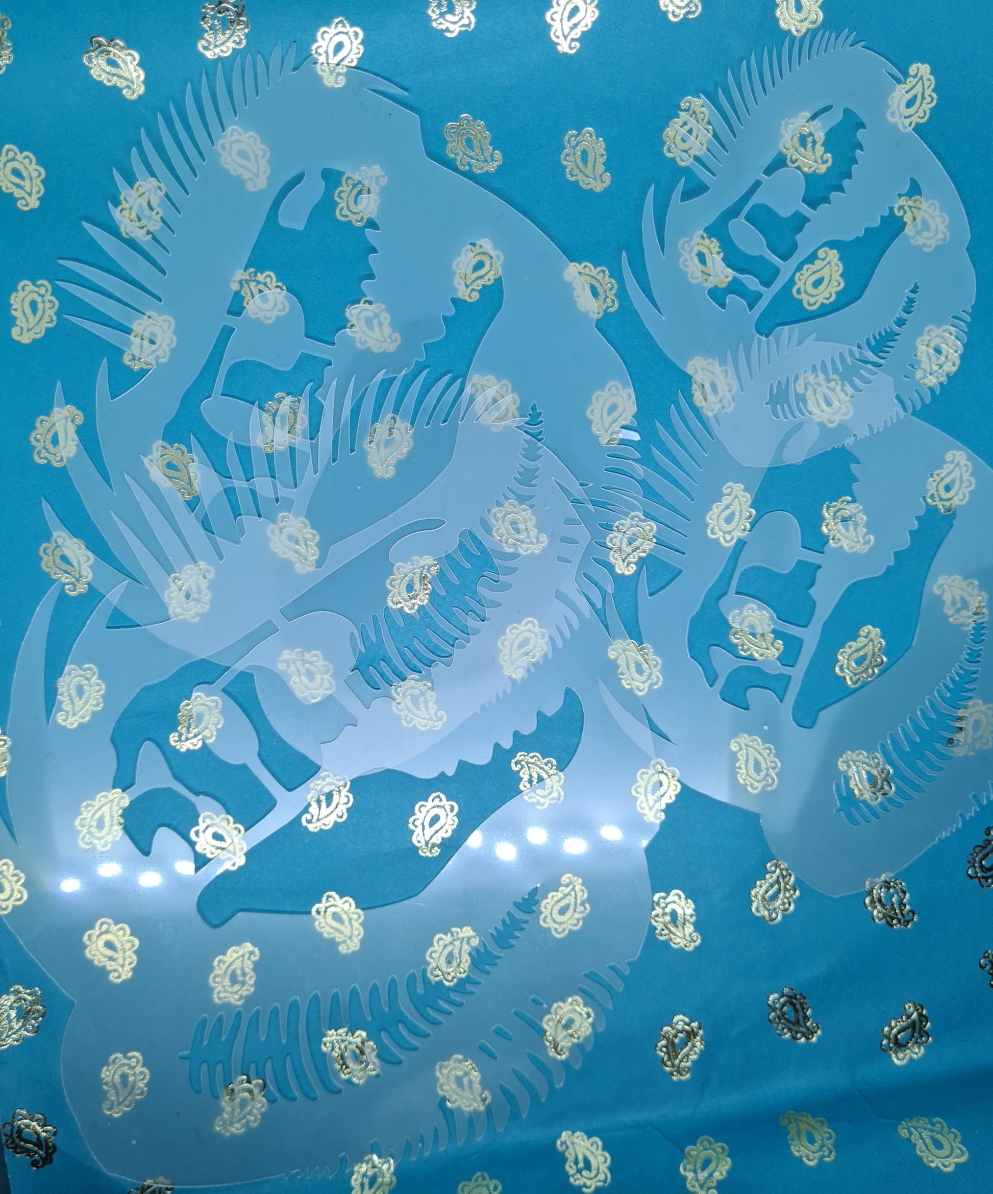 Jurassic Trex raptor dinosaur Fossil fern palm Stencil jungle fossil