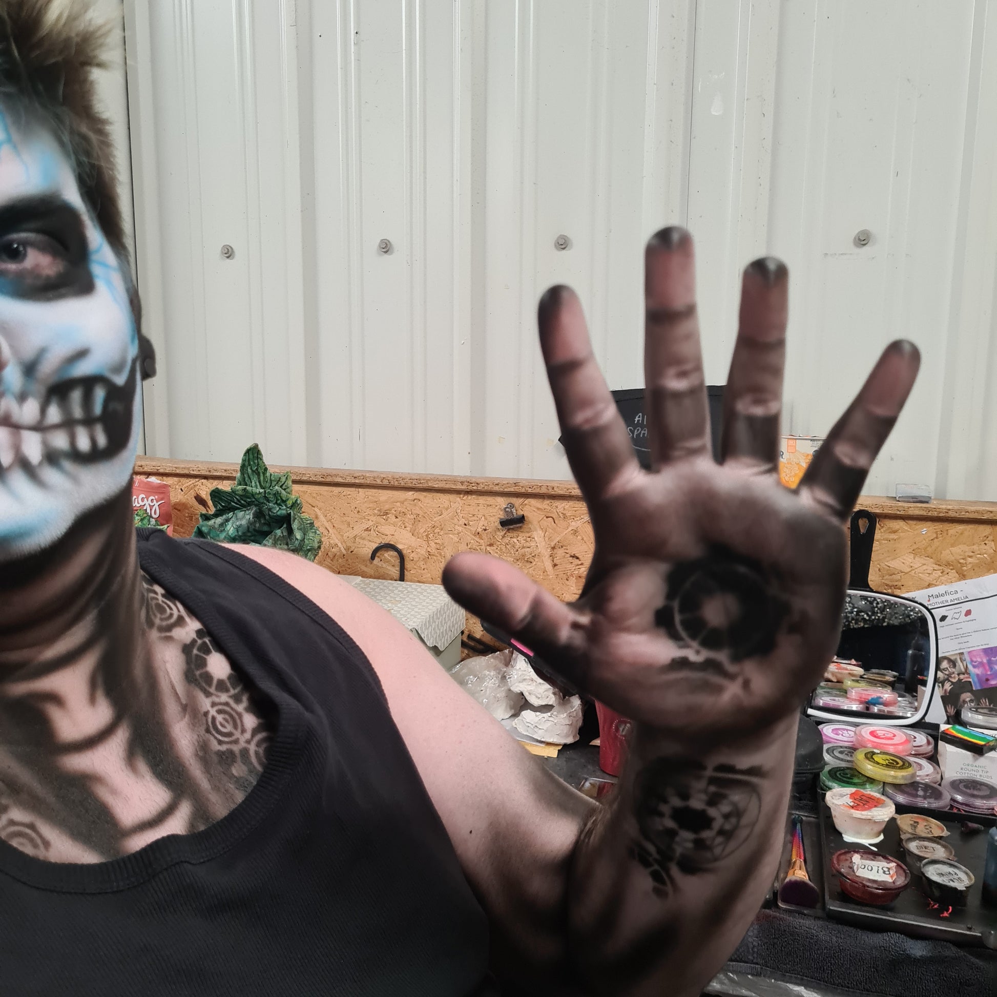 Quickly made for Sarah Scarer when she was leading our team decorating actors for a scare park attraction. She had the scary clockwork clown skull guy as 1 of hers!